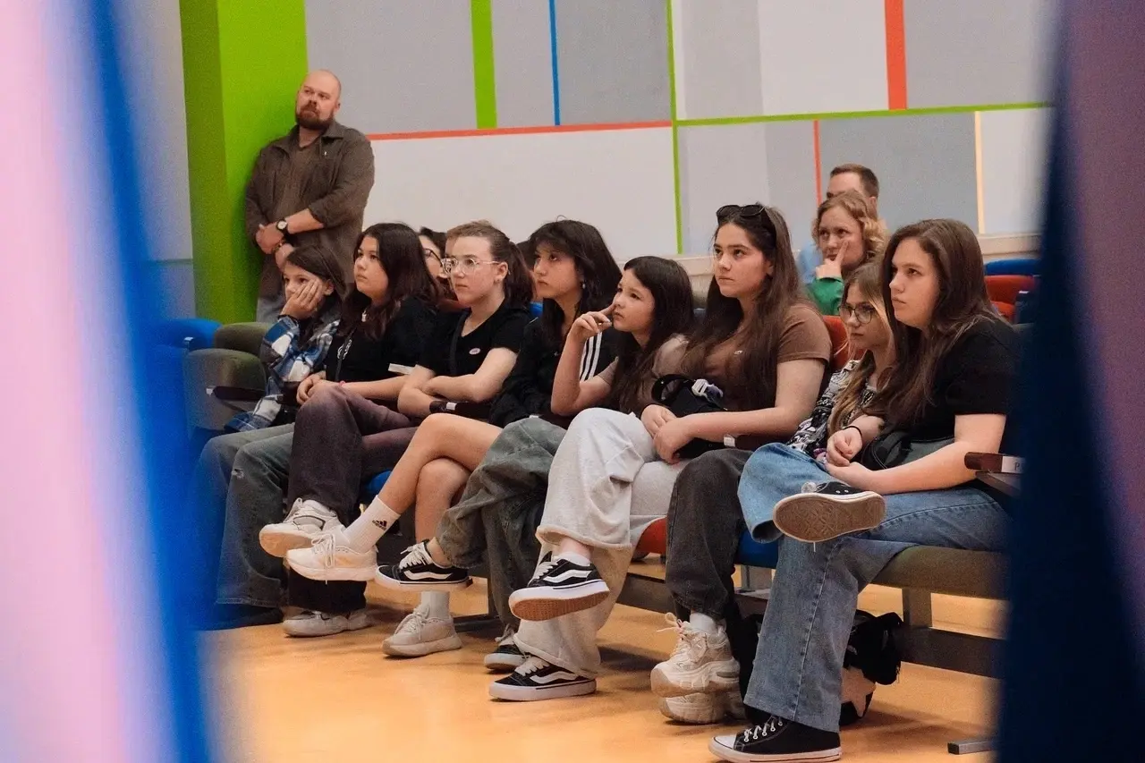 Андрей Перов, военно-исторический консультант студии «Военфильм», рассказал присутствующим о деятельности киностудии и особенностях съемок военно-исторических фильмов. Для школьников и педагогов показали эксклюзивные видеоматериалы о работе студии.